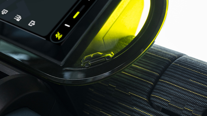 “Style” parça ilə örtülmüş ön paneldə yuxarı hissədə əlcək yeşiyi və Lingotto-dan ilhamlanan formaya malik sarı çərçivə yer alır.