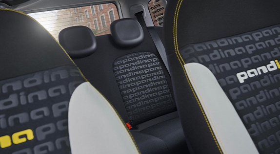 • Black Fabric Seats with monogram Panda and white stitching